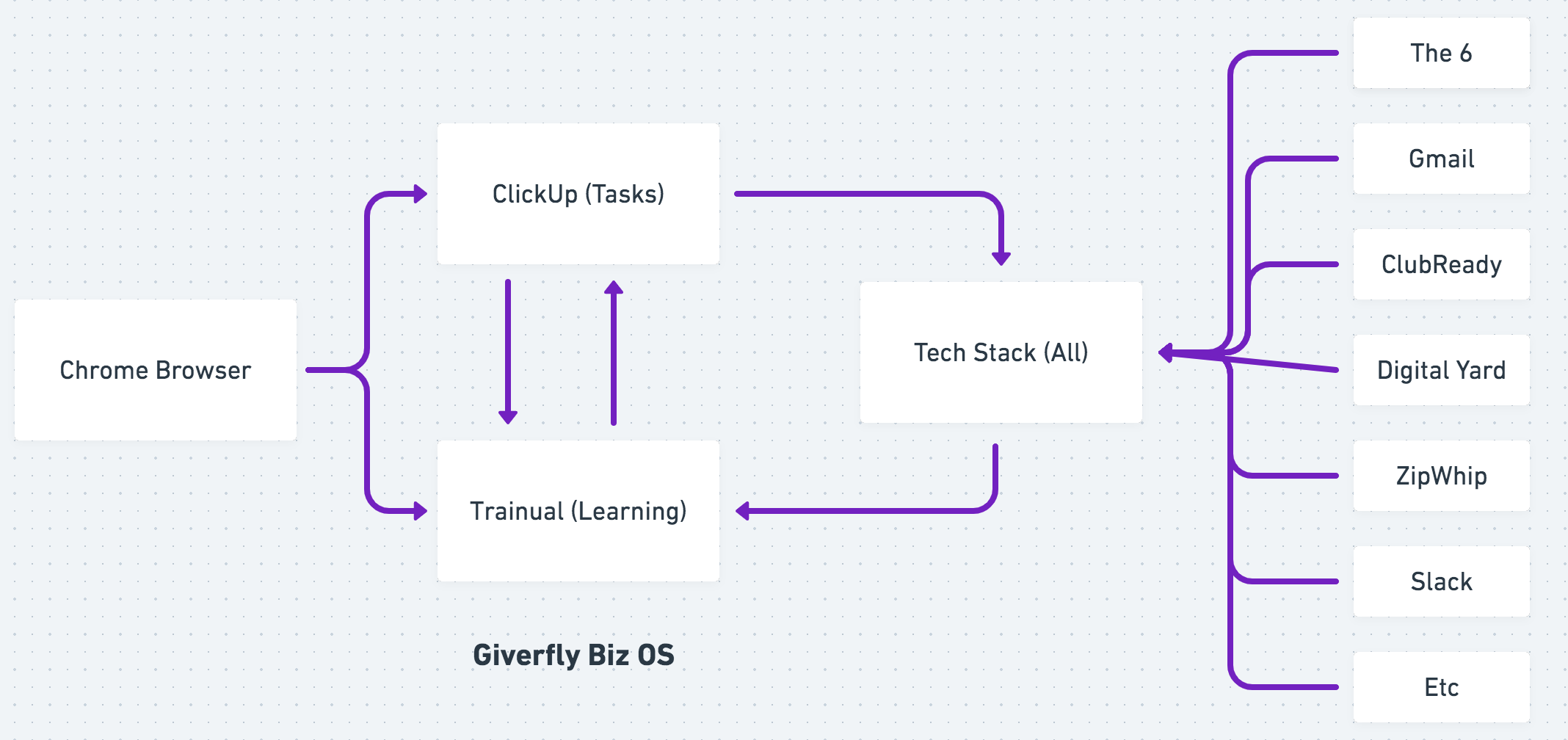 After we get to know you and your business we custom build your Business Operating System and coach you along the way. We use best in class third party technology such as ClickUp for task management and Trainual for your learning management system (internal google!) and wrap it in a system connecting all the other technology you use to run your business.