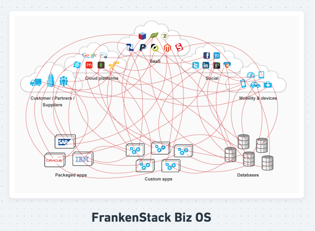 Cluster is probably the best word to describe how most businesses have their technology, apps, docs, videos, email, etc organized. We call it a Frankenstack.
